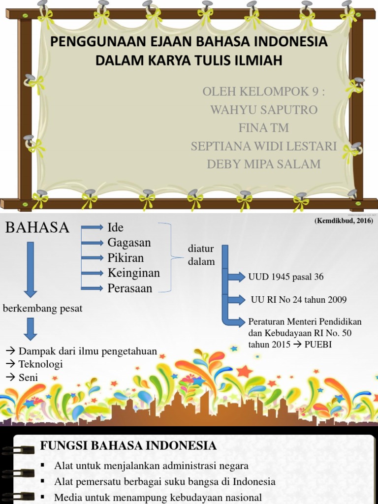 Penulisan Huruf Sesuai Puebi Sesi8 Ade Heryana Sst from slidetodoc.com Agar tidak salah, berikut ini ada beberapa penjelasan seputar karya tulis ilmiah. Secara singkat karya tulis ilmiah sendiri dapat dikatakan sebagai suatu laporan. Selain contoh tersebut, perhatikan bila ada kepala tulisan yang diawali angka, maka kalimat sesudahnya harus kapital juga. Siti nurbaya salah asuhan ronggeng dukuh paruk. Pembuatan maupun penulisan judul yang benar wajib dilakukan, karena kepala karangan ini sendiri punya beberapa fungsi penting. Meskipun semasa sekolah kita telah diajarkan mengenai cara menulis judul tulisan yang benar, namun pada kenyataannya masih saja banyak yang belum paham bagaimana cara penulisan judul yang benar sesuai dengan kaidah eyd atau puebi (pedoman umum ejaan bahasa indonesia). Kerapian menempati urutan utama dalam penulisan akademik (academic writing).penulisan akademik adalah segala karya tulis yang dibuat untuk kepentingan akademis. Contoh penulisan judul karya ilmiah sesuai eyd adalah manfaat teknologi untuk remaja.
