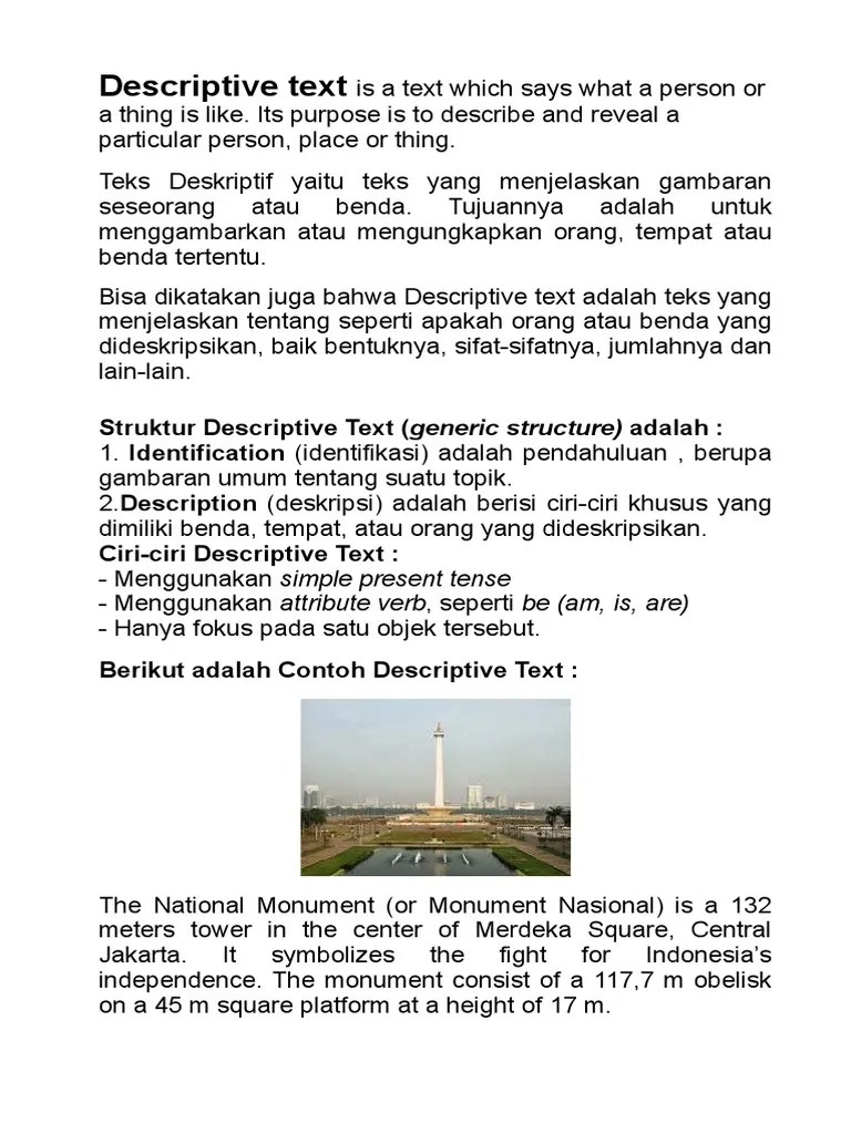 Teks deskriptif atau descriptive text adalah teks yang bertujuan untuk menggambarkan.